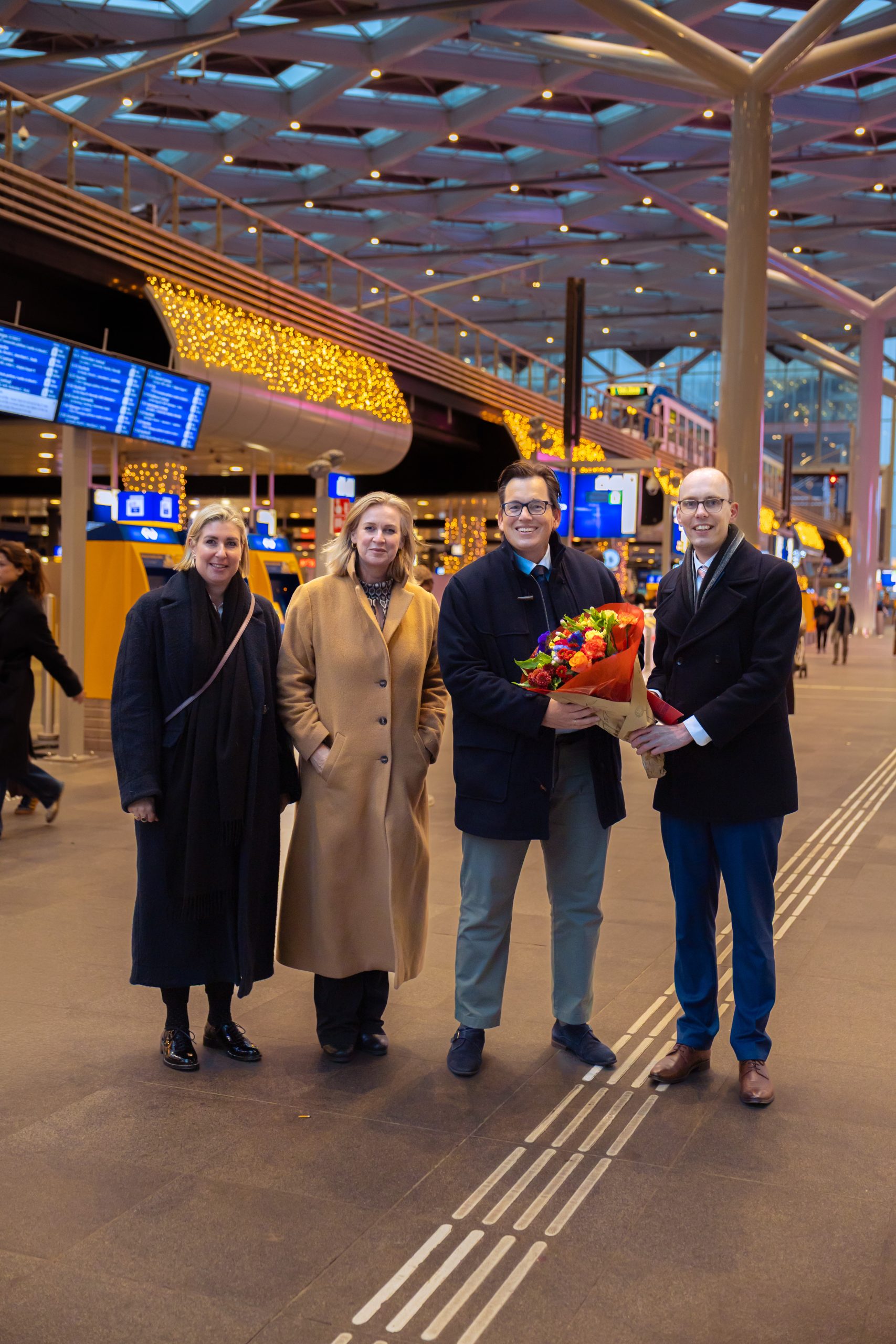 Reizigersvereniging Rover en OV-NL hebben bloemen en speciale Rover-sokken aangeboden aan Pieter Grinwis (ChristenUnie).